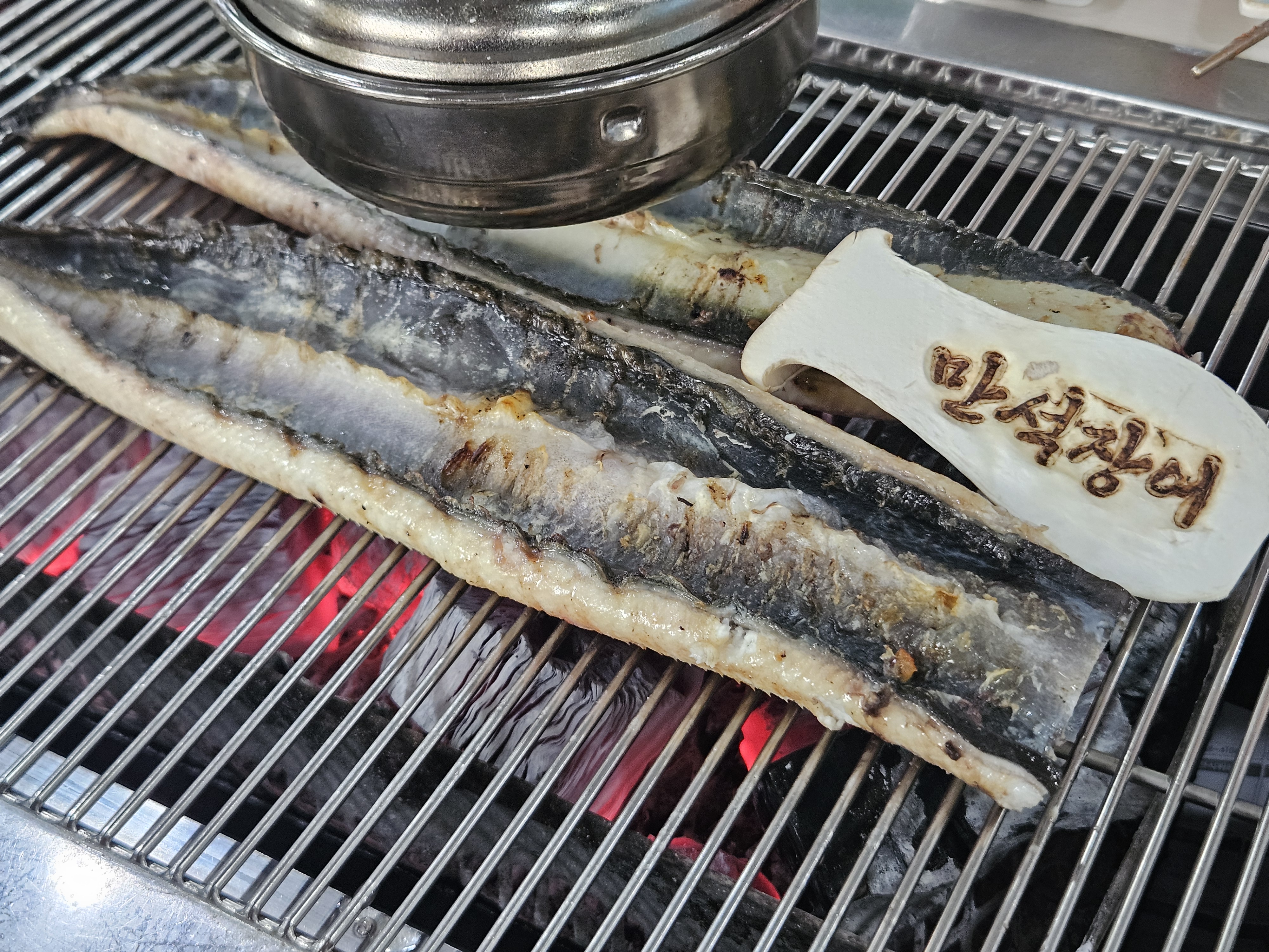 숯불에 올리자 겉은 바삭, 속은 촉촉하게 익어가는 모습이 정말 appetizing 🤤